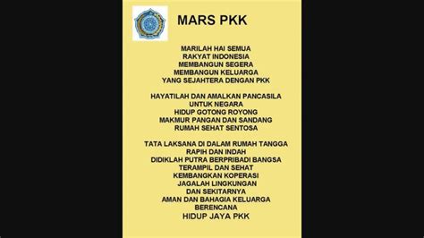 Lirik Mars PKK, lagu kebangsaan bagi para anggota PKK dan masyarakat Indonesia. Mengajarkan nilai-nilai kebersamaan dan persatuan.